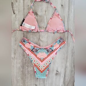 Stylish floral bikini set perfect for summer. Features a vibrant mix of colors for a standout look.