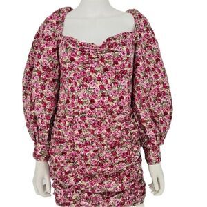 Nasty Gal Floral Print Balloon Sleevee Ruched Mini Dress. Size 6.