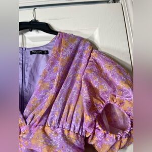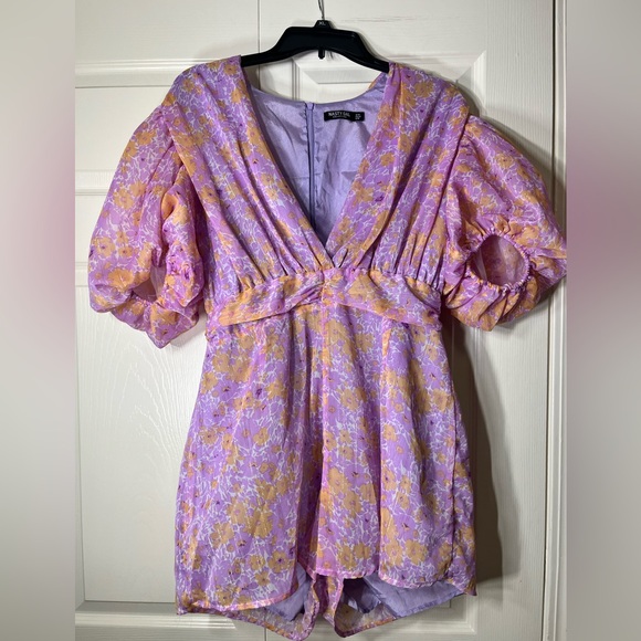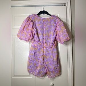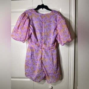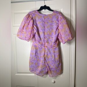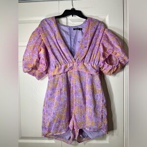 Nasty Gal Floral Puff Sleeve V-Neck Romper Size 10