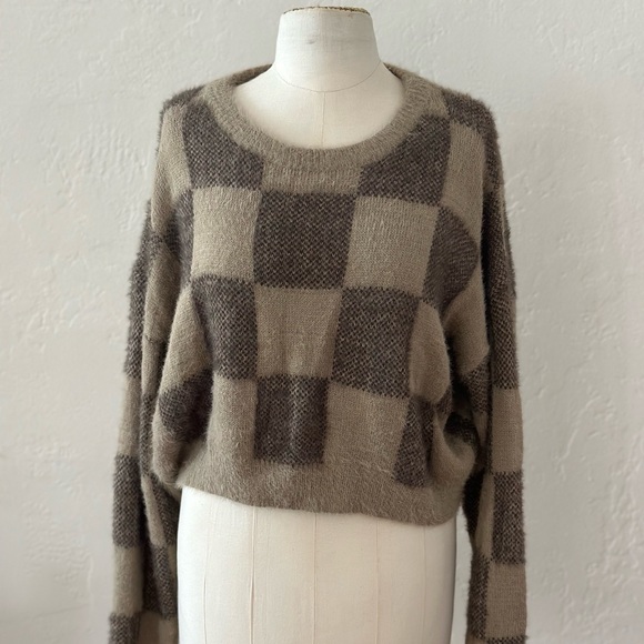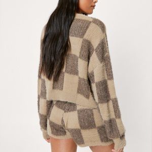 Nasty Gal Fluffy Knit Checkerboard Lounge Set