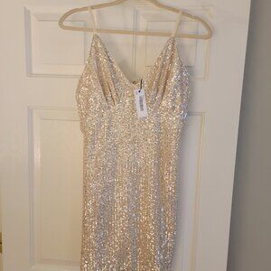 Nasty Gal Glitter Strappy Plunge Mini Dress Sz Large