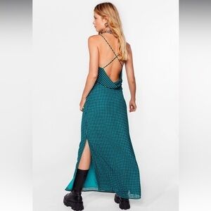 Nasty Gal Green Check Cross Back Cowl Maxi Midi Slip Dress Size 8