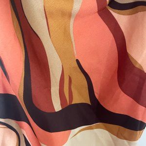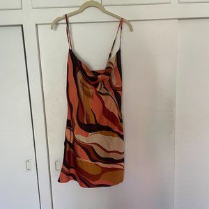 Super cute swirly abstract patterned mini dress from Nasty Gal, I've seen a very similar one from Verge Girl / Princess Polly as well. Slight scoop in the front bust area, with adjustable straps.
