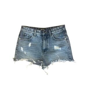 Pre-Owned Nasty Gal High-Waisted Distressed Denim Cutoff Shorts Size UK 8 / EU 36 – Frayed Hem Blue Jean Shorts