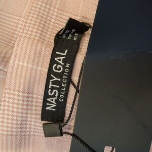 Nasty Gal In Check High Waisted Tapered Trouser Pants in Blush Pink and White