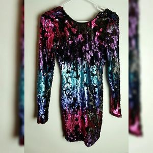 GORGEOUS sequin mini dress by Nasty Gal! Never worn, but there are little cuts in each shoulder (shown in photo) that are from me removing the shoulder pads in hopes that I could make the dress a little bit longer so it would fit, but alas, this beautiful dress was still too small :( (im normally a small) However, it's an easy fix and does not affect the appearance of the dress and BONUS I'm listing it for much less than I normally would because I feel bad about it. Fully lined. True to size.