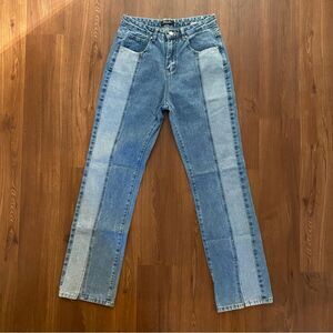Nasty Gal Jeans Split Hem Color Block Blue Size 6 Flirty Feminine