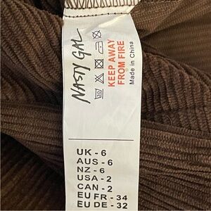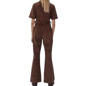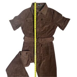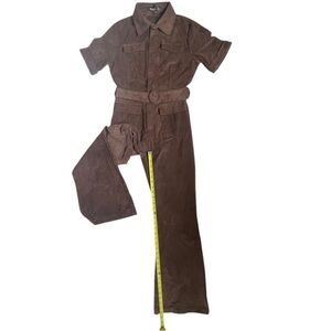 Nasty Gal Jumpsuit Womens 6 Brown Corduroy Flared Flare Belted Short Sleeves NWT