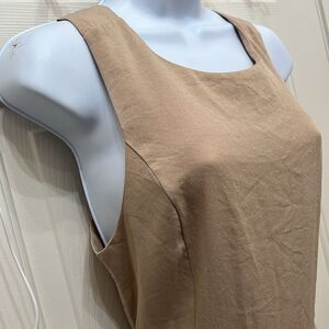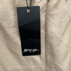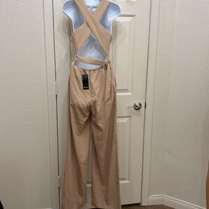 Nasty Gal Khaki Beige Pants Romper Scoop Neck Sleeveless Wide Leg Cut Out Back
