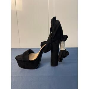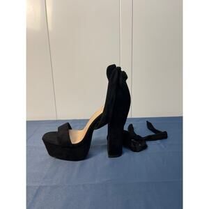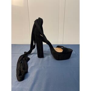 Nasty Gal Lace Up Open Toe Velvet Platform Pumps Color Black Size 8 Pre-Owned