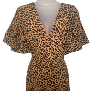 Nasty Gal Leopard Print Maxi Dress US 10 Flutter Sleeve Side Slit