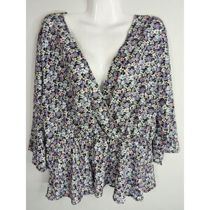 Nasty Gal Lilac Disty Floral Peplum Bell Sleeve Top Women's 18 Boho Babydoll