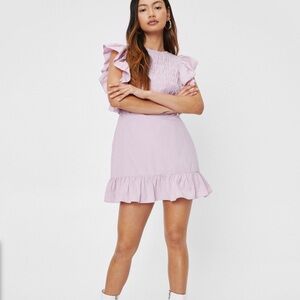 Nasty Gal Mini Dress Pink Ruffled Hem and sleeve size 8