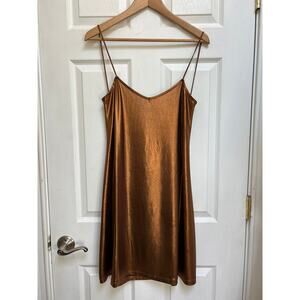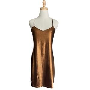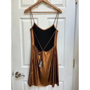 Nasty Gal Motel Bronze Tiffany Open Plunge Back Mini Slip Dress