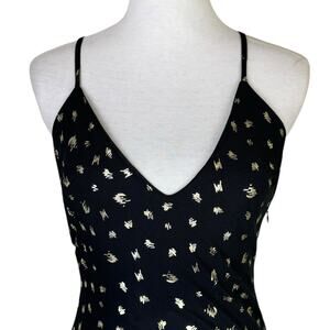 Nasty Gal NWT Gold Metallic Abstract Polka Dot Black Strappy Mini Slip Dress