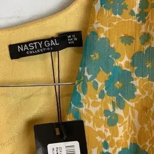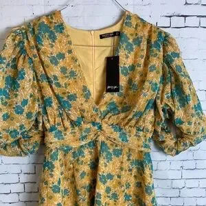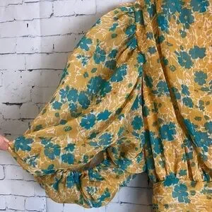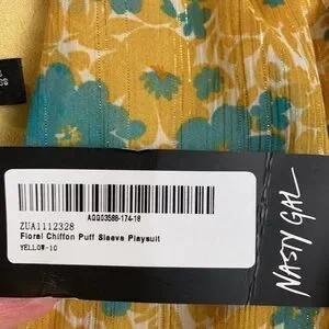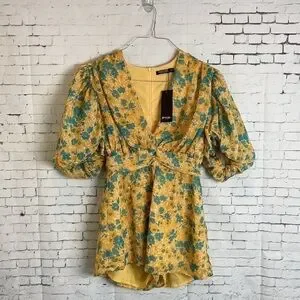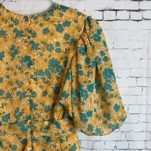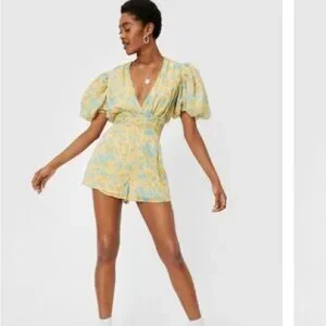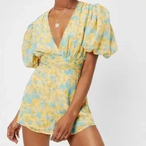 Nasty Gal Womens Floral Chiffon V Neck Puff Sleeve Playsuit Romper Yellow Floral Size 6.