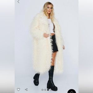Nasty Gal Oversized Mongolian Fur Coat in Cream women’s size 12