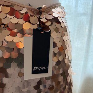Nasty Gal Petite Disc Sequin Mini Pelmet Skirt Copper Rose Gold Size 2 NWT