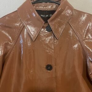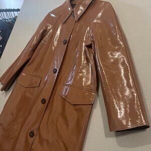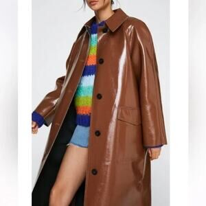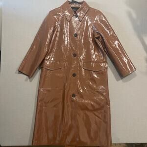 Nasty Gal Petite Vinyl Mac Coat Womens/ Juniors 0 Brown Button Down Trench