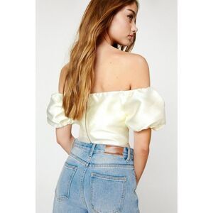 Nasty Gal Pleat Detail Off The Shoulder Structured Satin Crop Top size 0 NWT