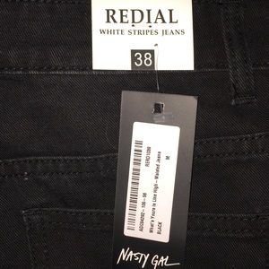 Never worn, tags still in tact. Black cropped jeans with double racing stripes up the sides