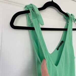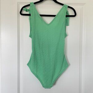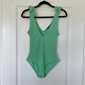 Nasty Gal Ribbed Bunny Tie Bodysuit - Seafoam Green - Size 4