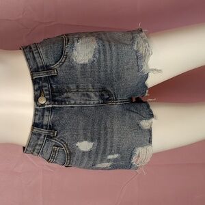 Nasty Gal Rip Em Off Distressed Denim Shorts in Mid Blue Wash