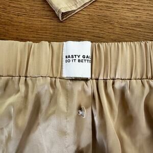 Nasty Gal Satin Tie Front Pyjama shorts Set in Champagne