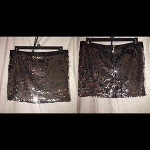 This brand-new never been worn sequins miniskirt has a zipper closure in the back and is a size small but runs large. Beautiful and sparkly in person. Perfect for the new year!