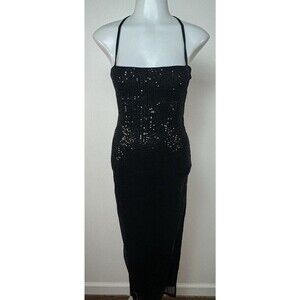 Nasty Gal Sexy Sequin Bandeau Lace Up Back Midi Semi-Formal Slit Dress Sz 4 NEW