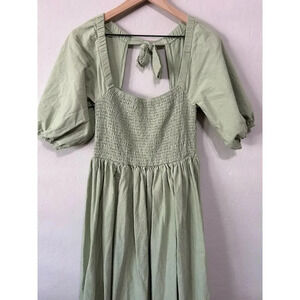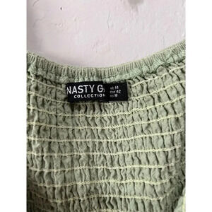 Nasty Gal Shirred Puff Sleeve Maxi Slit Dress Light Green Size 10