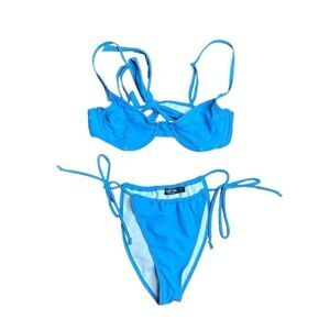 Nasty Gal Shore of Myself High Cut Blue Tie Bikini Size 2