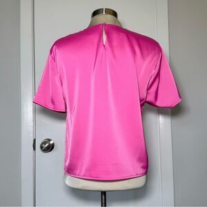 Nasty Gal Short Sleeve Satin Crop Top Blouse Relaxed Fit Barbie Pink 2