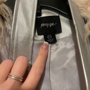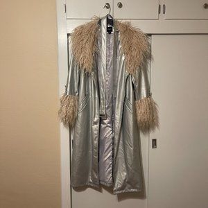 Nasty Gal Silver Faux Shearling Fur Collar Trench Coat : Size US 10
