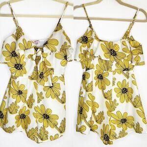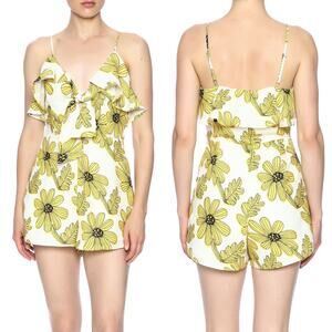 Nasty Gal Sleeveless Yellow Floral Daisy Print Ruffle Tie Front Romper Small