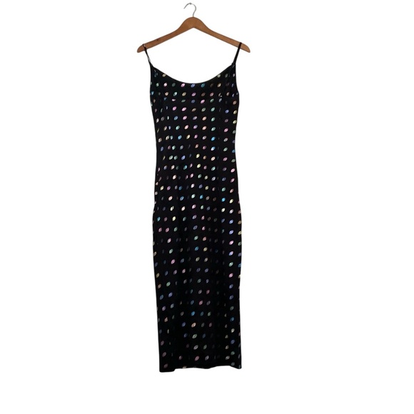 Nasty Gal Strappy Metalic Polka Dot Maxi Slip Dress Sz2 Retro Groovy Funky Disco