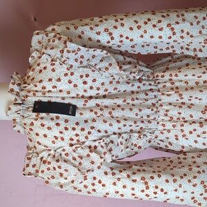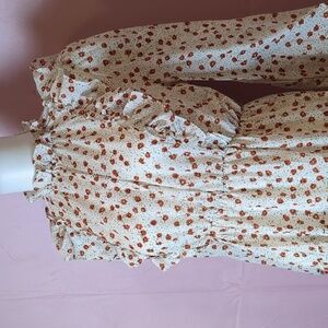 Nasty Gal Steal the Grow Cream and Orange Floral Print Long Sleeve Mini Dress 6