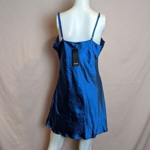Nasty Gal Studio Sleek Dreams Satin Dress in Blue Size 10
