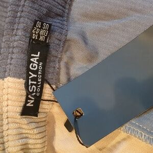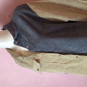 Nasty Gal Tan Writers Block Corduroy Color Block Button Up Shirt Dress size 10