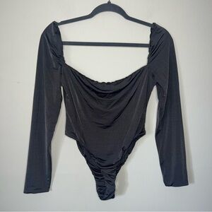 Nasty Gal Thong Bodysuit Square Neck Long Sleeved Chocolate Size 10 NWT