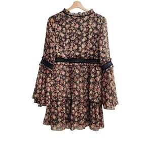 Nasty Gal Tiered Floral Dress with Sheer Detail, Size Small