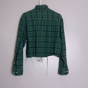 Nasty Gal Van Graaf Green Plaid Cropped Long Sleeve button down raw hem top