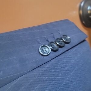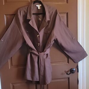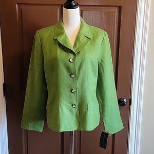Blazer is collared and long sleeved with 4 buttons on each sleeve at bottom. Measures Pit to Pit 21 inches. Shoulder to Hem 18 1/2 inches. NWOT but has missing button. STEAMED.(The price is the price on this one)