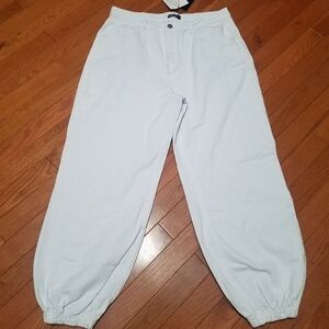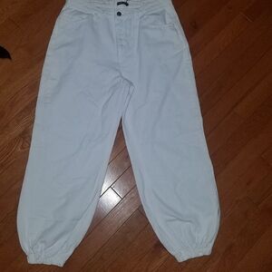 Nasty Gal White Denim Cargo Jeans W/elastic Cuff details Sz 10