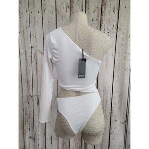 Nasty Gal Womens 6 White Long Sleeve One Shoulder Cut Out Bodysuit Top NEW NWT