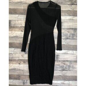 Nasty Gal Women's Black Long Sleeve Mesh Panel Bodycon Dress Size Small