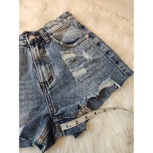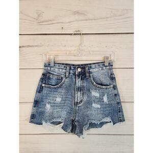 Nasty Gal Women's Blue Mid Rise Cotton Distressed Raw Hem Cut Off Shorts Size 2