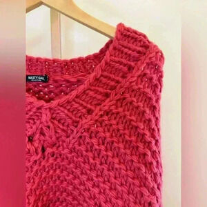 Nasty Gal Women's Deep Pink/Red Pom Pom Chunky Knit Sweater Size S Pullover