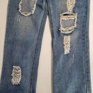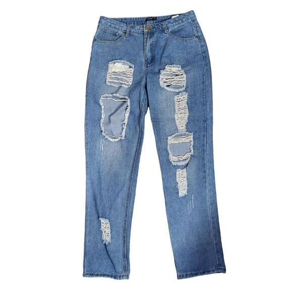 Nasty Gal Womens Size 10 Girl Talk Distressed Shredded Mom Jeans Light Wash