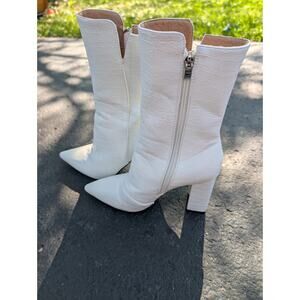 Nasty Gal Ankle Boots Booties Womens 6 White Croc Chunky Heel Pointed Toe. Boots are in very good, pre-owned condition. They do have a few very small scuffs. See up close photo of flaws.